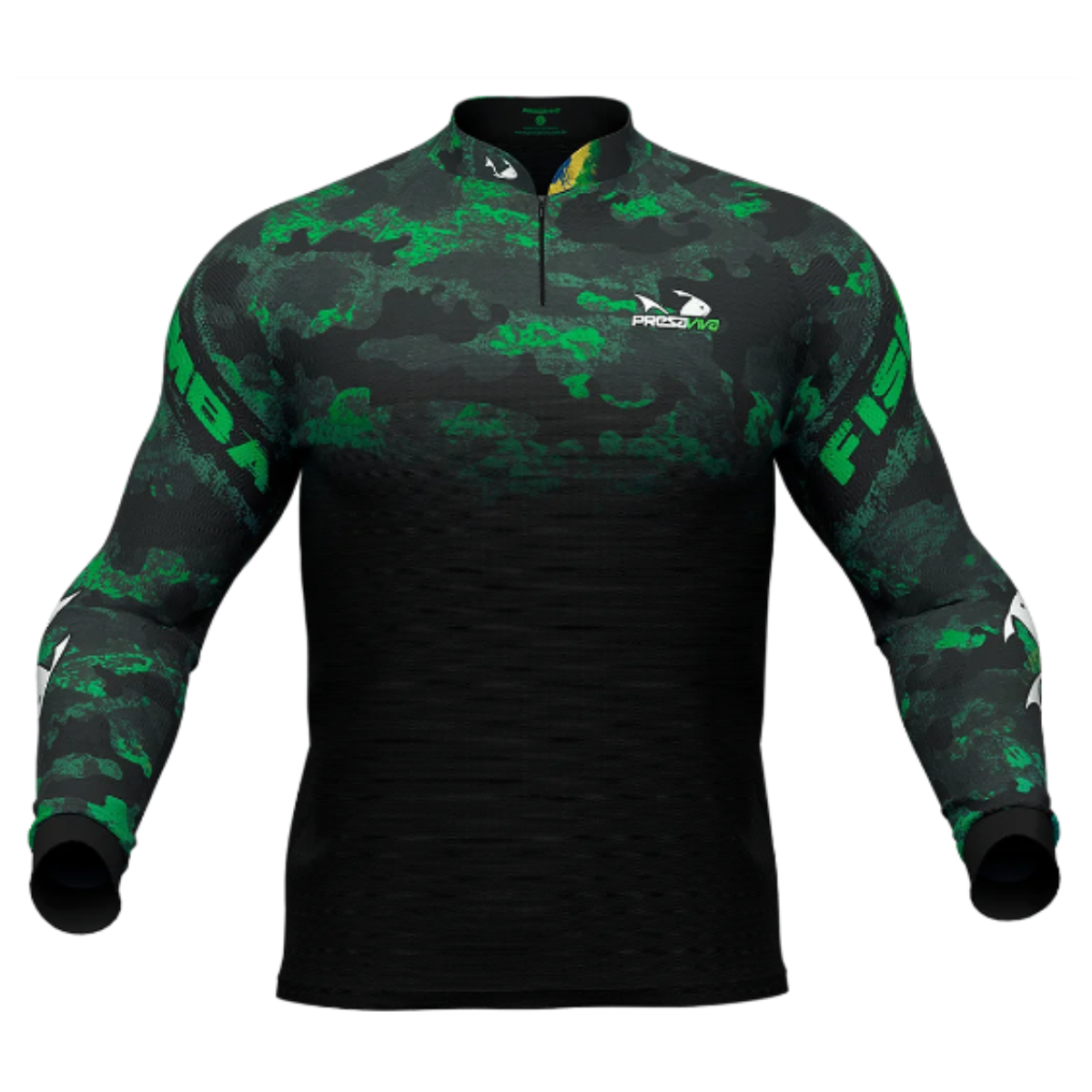 Camisa sublimada Presa Viva Tecnologia Dry, que proporciona máximo conformo térmico durante a atividade, modelo raglã manga longa, fechamento com zíper.