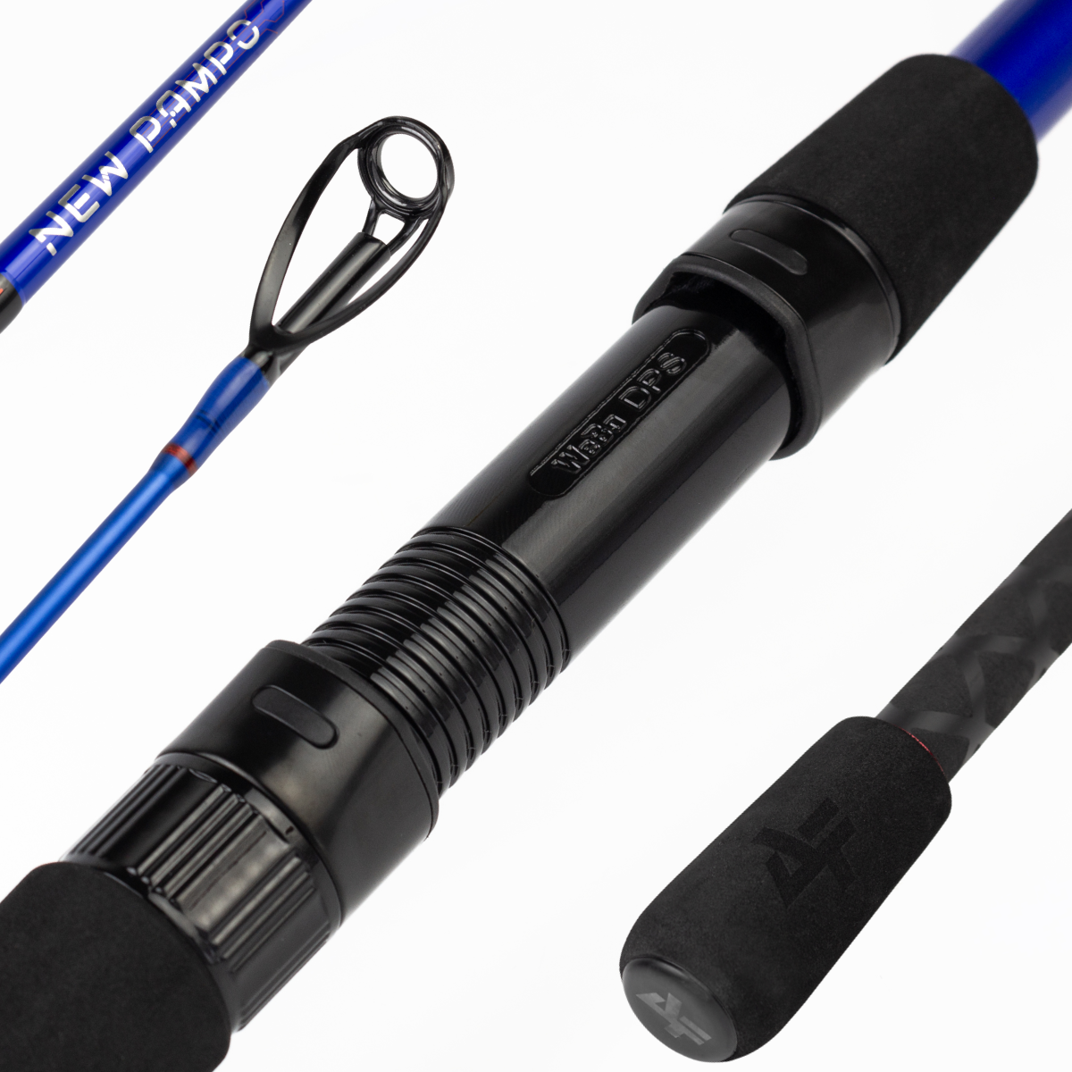 A vara New Pampo é a preferida dos pescadores de pesqueiro. Feita com um blank de carbono, ela combina perfeitamente leveza e resistência. O cabo longo em EVA proporciona conforto e uma pegada firme durante a pescaria.Versão Carretilha: Todos os passadores Pata dupla | Ponteira Low Rider anti enrosco.Versão Molinete: Somente 1° passador Pata Dupla | Ponteira tradicional.